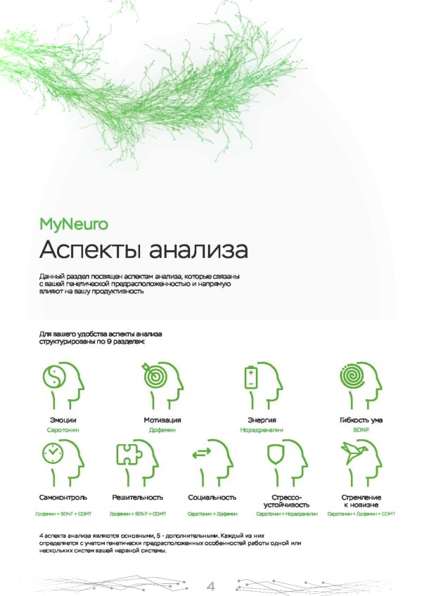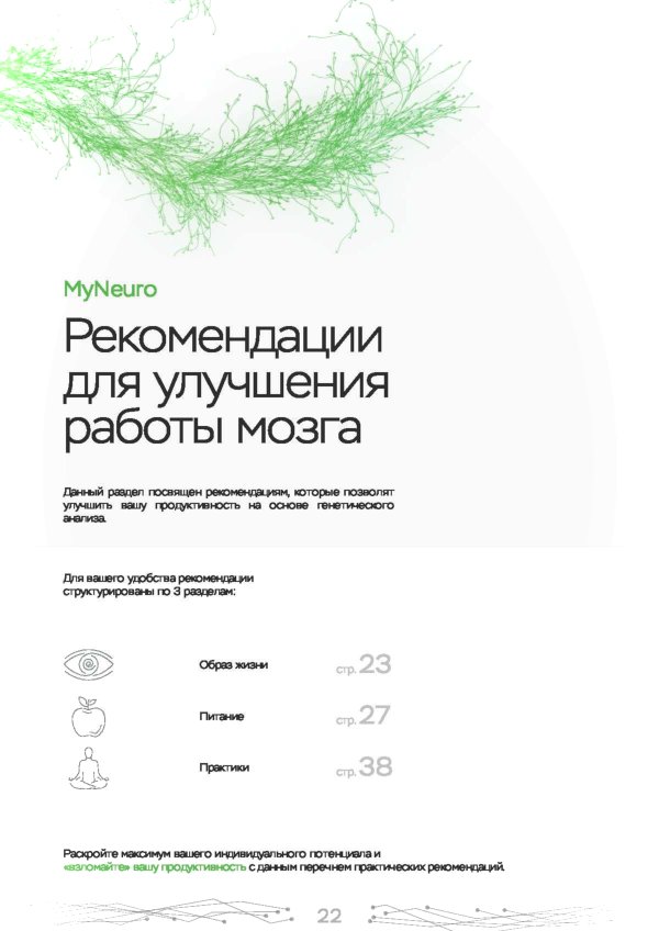 Этот ДНК анализ показывает влияние наиболее важных 10 генов на психическое и эмоциональное состояние. Именно они регулируют выработку гормонов, работу нейромедиаторов. Используйте знания о природных свойствах своего организма для борьбы со стрессом, повышения работоспособности и общего тонуса. Каждый человек индивидуален, поэтому мы рекомендуем пройти наш генетический нейро тест в Ивделе.